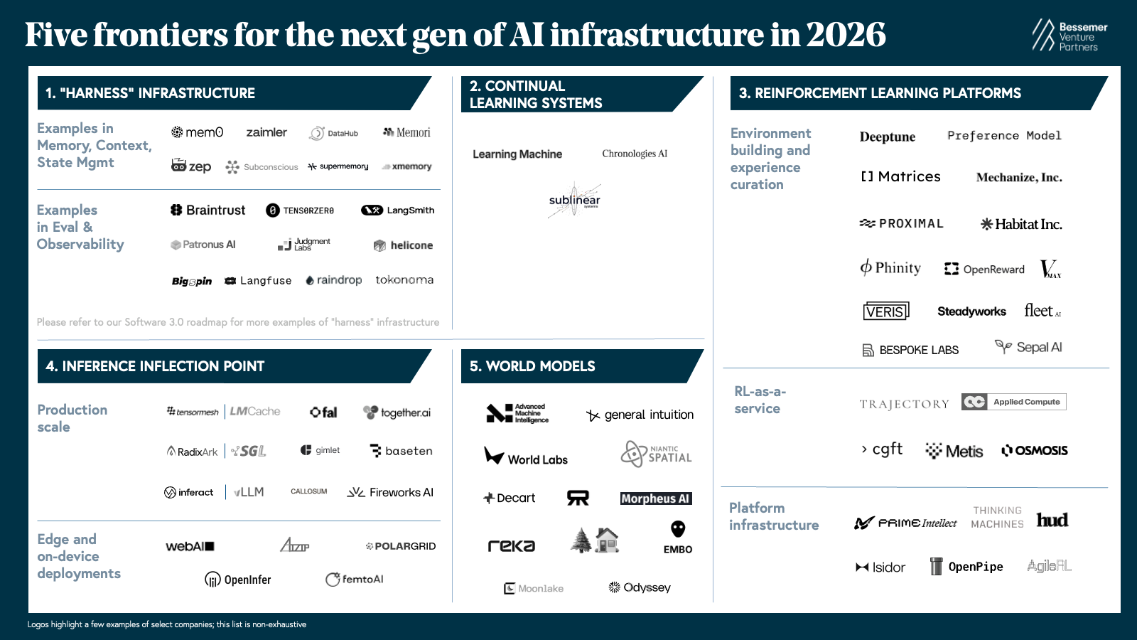 The stage is being set for a new wave of AI infrastructure tools to enable AI to operate in the real world. We’ve identified five frontiers that will define this next wave, each addressing a structural limitation that needs to be solved beyond model scaling.