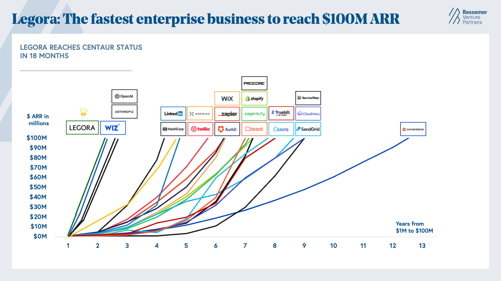 Legora started with the ambition to augment the legal workflow, empowering what Max calls the “10x lawyer.” And now, after reaching $100M ARR, the fastest growing Centaur in Vertical AI history, it’s clear that Legora is on a trajectory to expand its AI-powered collaborative operating system for legal work around the globe. At Bessemer, we’ve been in awe of Legora’s growth arc, and we know this historic company will be a leading example and author in the playbooks that are being rewritten for the AI era.