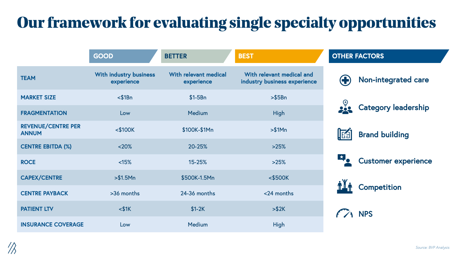 Our investment criteria when assessing the single-specialty opportunity for founders
