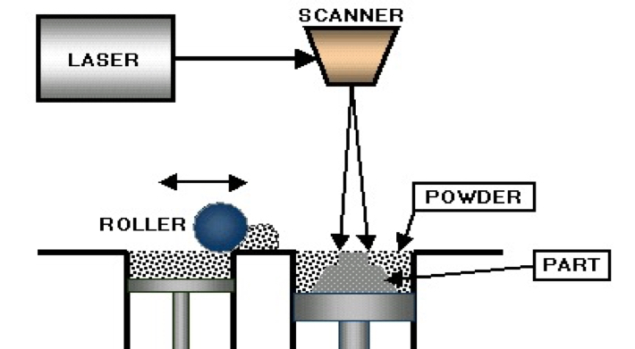 The most common method is called Direct Metal Laser Sintering (DMLS). A layer of metal powder is deposited on a build platform by a recoating blade. A very powerful laser then very precisely melts certain areas of the powder to fuse the metal powder to the metallic build platform. The build platform is then lowered 75 microns and the recoating blade pushes another layer of fresh powder onto the build platform. The laser then fuses this second layer to the first in a very specific pattern. These steps of recoating, lowering the build platform, and lasering continues until the part is complete (1,000 passes or more). At the end, the part is removed from the deep chamber of powder surrounding it. The most common metal powders are aluminum, cobalt chrome alloy, nickel alloy, stainless steel, and titanium. These each have different melting points and other mechanical properties so they are used for various reasons and in different industries.